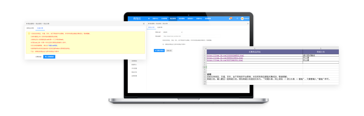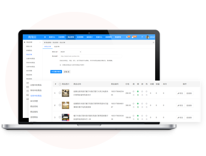 商淘云多用戶商城系統(tǒng)的商品數(shù)據(jù)采集功可以幫助商家解決工作效率低下、降低商店運營成本,提高工作準(zhǔn)確度,降低企業(yè)人員成本等問題,是商家運營的好幫手!