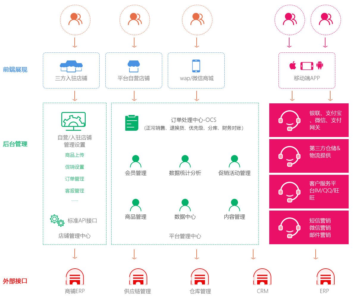 PC、WAP、微商城、小程序、安卓APP、蘋果APP,六端合一,多元化的商城入口,滿足消費(fèi)者多樣化的需求。助力企業(yè)在日新月異的今天,把握市場(chǎng)的動(dòng)向。