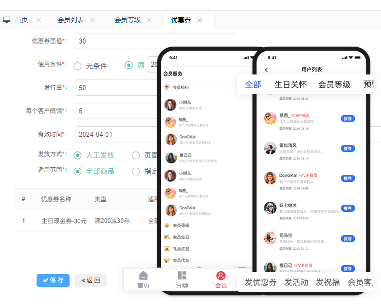全方位精細(xì)化的會(huì)員互動(dòng)營(yíng)銷,提升會(huì)員粘性、復(fù)購(gòu)、到店轉(zhuǎn)化。