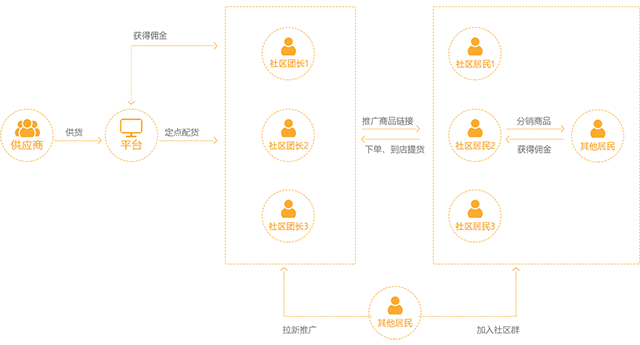 先預(yù)售收款,供貨商統(tǒng)一發(fā)貨,團(tuán)長(zhǎng)收貨后進(jìn)行配送,大大降低資金庫(kù)存壓力。